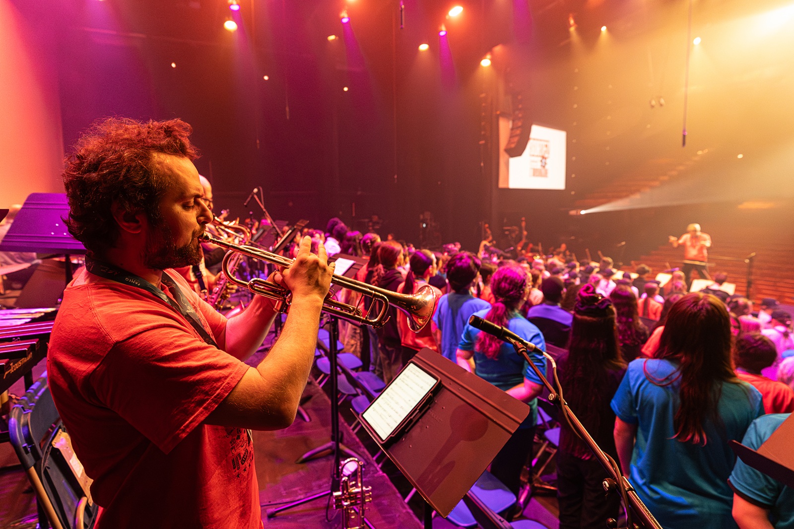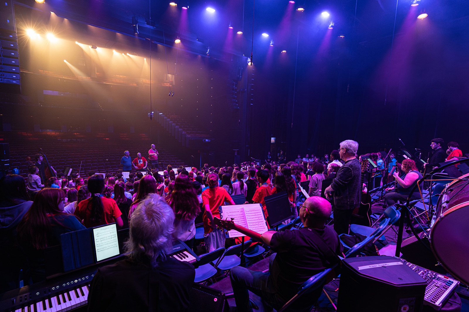 Le rassemblement Viens jouer avec nous regroupe près de 1500 musiciens et chanteurs des écoles primaires et secondaire de la région de Québec et d’ailleurs qui viennent présenter leur travail sur la scène de la Salle Albert-Rousseau du Cégep Sainte-Foy.